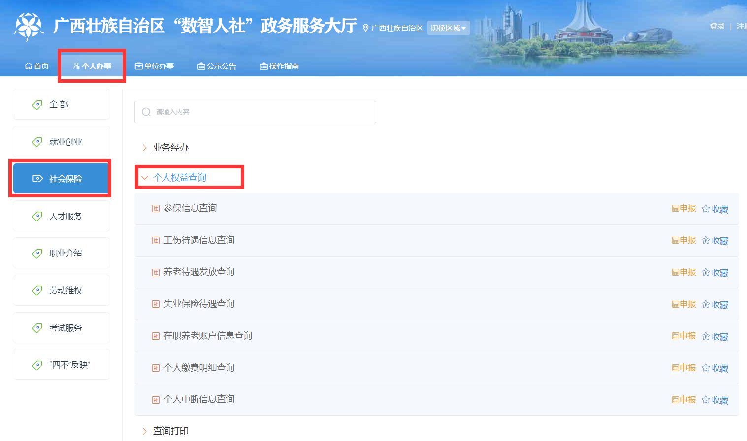 查询个人社保