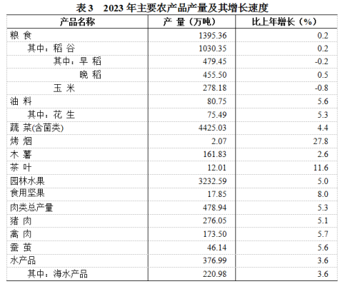 全年蔬菜产量(含食用菌)4425.03万吨,增产4.4%。园林水果产量3232.59万吨,增产5.0%。