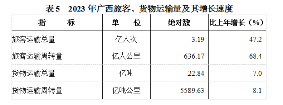 全年旅客运输总量3.19亿人次,比上年增长47.2%。旅客运输周转量636.17亿人公里,增长68.4%。
