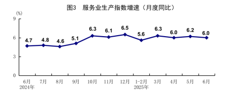上半年,服务业增加值同比增长5.5%,比一季度加快0.2个百分点。其中,信息传输、软件和信息技术服务业,租赁和商务服务业,交通运输、仓储和邮政业,批发和零售业增加值分别增长11.1%、9.6%、6.4%、5.9%。6月份,全国服务业生产指数同比增长6.0%。其中,信息传输、软件和信息技术服务业,租赁和商务服务业,金融业,批发和零售业生产指数分别增长11.6%、8.4%、7.3%、6.9%。1-5月份,规模以上服务业企业营业收入同比增长8.1%。6月份,服务业商务活动指数为50.1%,服务业业务活动预期指数为56.0%。其中,邮政、电信广播电视及卫星传输服务、互联网软件及信息技术服务、货币金融服务、资本市场服务、保险等行业商务活动指数位于55.0%以上较高景气区间。