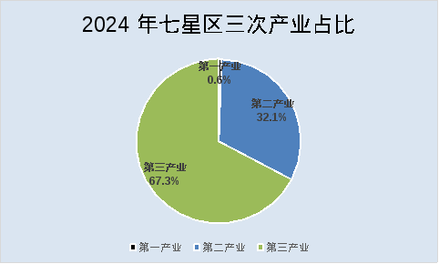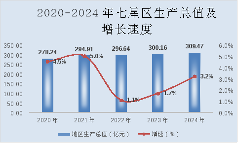 初步核算,2024年七星区生产总值(GDP)309.47亿元,按可比价计算,比上年增长3.2%。