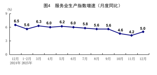 全年服务业增加值比上年增长5.4%。其中,信息传输、软件和信息技术服务业,租赁和商务服务业,交通运输、仓储和邮政业,批发和零售业,住宿和餐饮业增加值分别增长11.1%、10.3%、5.2%、5.0%、4.9%。12月份,服务业生产指数同比增长5.0%。其中,信息传输、软件和信息技术服务业,租赁和商务服务业,金融业生产指数分别增长14.8%、11.3%、6.5%。1—11月份,规模以上服务业企业营业收入同比增长7.8%。12月份,服务业商务活动指数为49.7%,比上月上升0.2个百分点;服务业业务活动预期指数为56.4%,上升0.5个百分点。其中,电信广播电视及卫星传输服务、货币金融服务、资本市场服务等行业商务活动指数均位于60.0%以上高位景气区间。