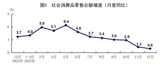 根据第五次全国经济普查结果对社会消费品零售总额、网上零售额数据进行了修订,2025年社会消费品零售总额、网上零售额相关指标月度增速按照可比口径计算。