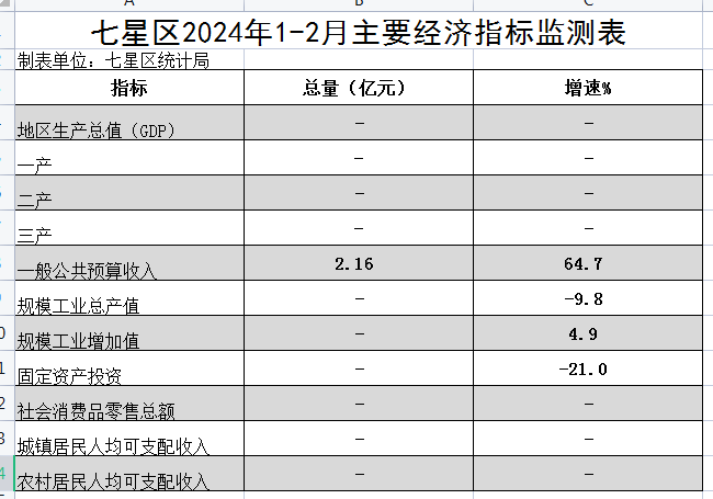 七星区2024年1-2月主要经济指标监测表
