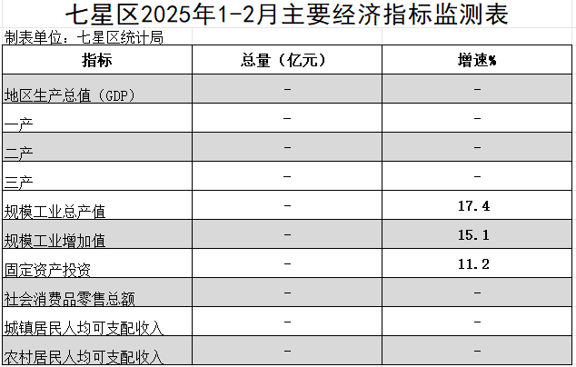 七星区2025年1-2月主要经济指标监测表