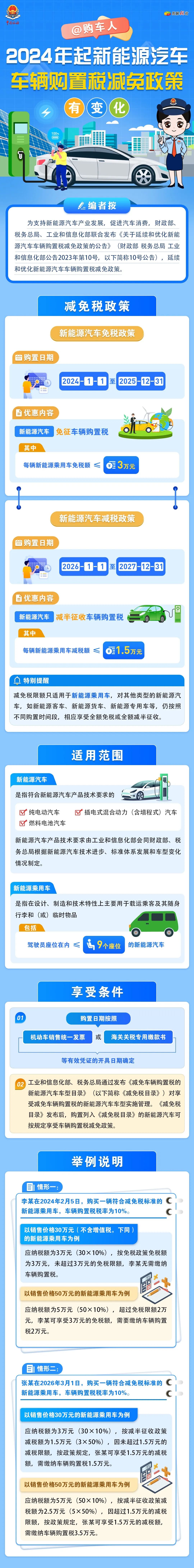 2024年起,新能源汽车车辆购置税减免政策有变化