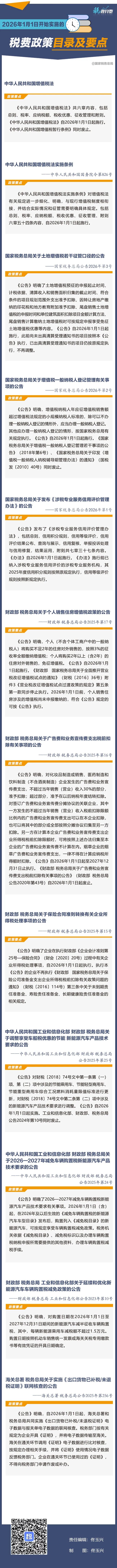 2026年1月1日开始实施的税费政策