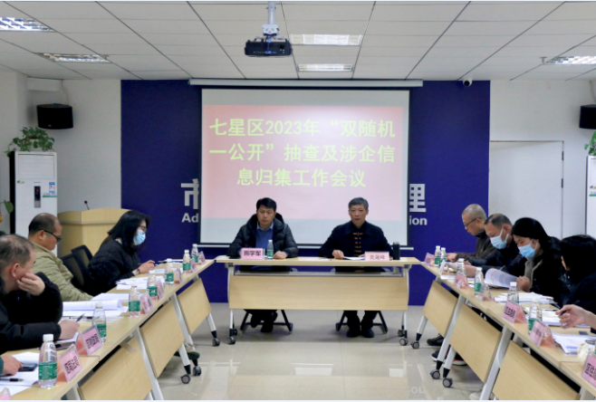 会上,七星区联席会议办公室就2023年“双随机、一公开” 监管工作的重点工作、绩效考核要求、指标要素以及工作推进时间等,逐一进行详细部署,并传达了《桂林市事中事后监管联席办关于做好2023年“双随机、一公开”监管工作的通知》、《桂林市七星区事中事后监管暨“双随机、一公开”监管联席会议办公室关于调整七星区事中事后监管暨“双随机、一公开”监管联席会议成员单位及人员的通知》和《关于做好2023年“双随机、一公开”抽查及涉企信息归集工作的通知》的文件精神,随后,参会人员对双随机和涉企信息工作开展过程中存在的问题及业务考核要求等方面进行了深入交流。