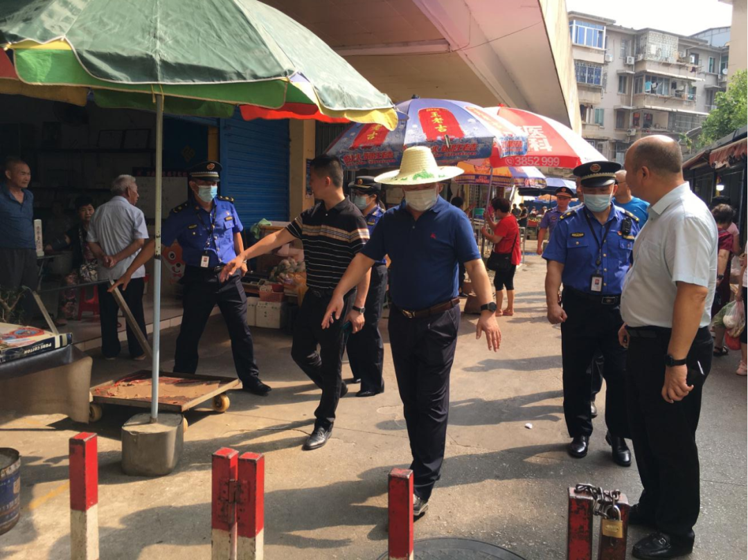 为巩固和深化全国文明城市创建成果,全面提升市容环境卫生管理水平,8月4日上午,市城管委主任刘祖军带队检查我区国家文明城市复审工作情况,重点对东环市场、家乐市场等集贸市场开展工作督导,区领导二级调研员谢文彬以及相关部门负责人陪同检查。