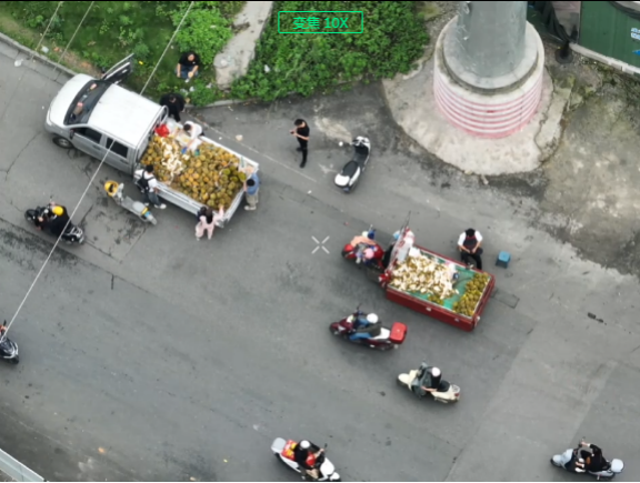 镜头一:占道经营治理。借助无人机宽视角,大范围内迅速识别锁定占道经营情况,并进行实时录像、拍照取证。(违章占道经营具有位置分散和流动性强的特点,日常地面巡查每次巡逻的区域有限,巡逻速度也相对较慢人力成本高。)
