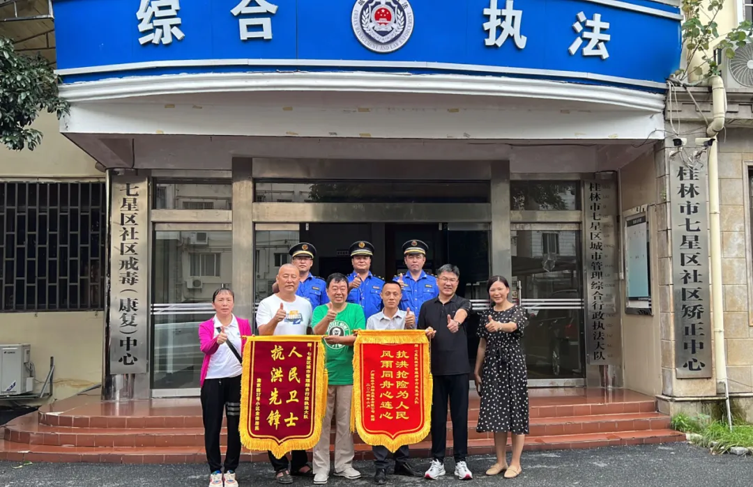 近日,施家园37号小区全体居民为表达感谢,向大队赠送了两面分别为“人民卫士,抗洪先锋”“抗洪抢险为人民,风雨同舟心连心”锦旗,锦旗不仅代表人民群众对党和政府的感谢之情,更是对城管队员们风雨无阻、不辞辛劳、默默奉献精神的肯定。