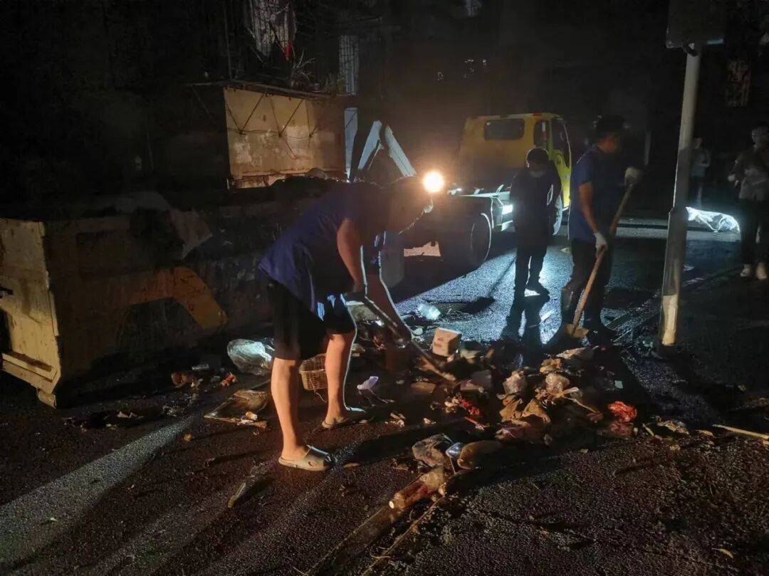 清淤工作持续至6月21日凌晨3点多,大家伴着月光干劲十足,热情高涨,经过持续奋战,施家园路恢复了原样。此次清淤工作采取“人工+机械”作业相结合的模式,配合高压冲洗车、洒水车等冲洗设备,充分发挥机械清洗作业优势,对道路积水点、残留淤泥进行冲刷,彻底冲洗路面,清除道路污垢,及时恢复行人车辆安全通行。