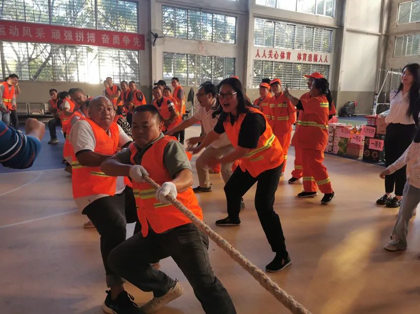 本次趣味运动会分别有包扎竹叶、气排球赛、接力跑、垃圾分类投篮、二人三足跑及拔河等项目。随着裁判员一声哨响,环卫工人们以饱满的激情投入到比赛中,大家斗智斗勇,团结互助,奋力比拼,在汗水与笑声中展现了新时代最美环卫工人风采。