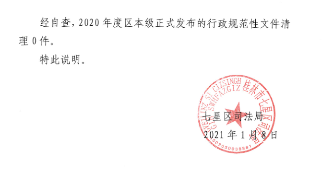 关于七星区2020年度行政规范性文件清理情况的说明