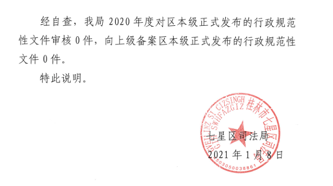 关于七星区2020年度行政规范性文件合法性审查和备案工作的情况说明