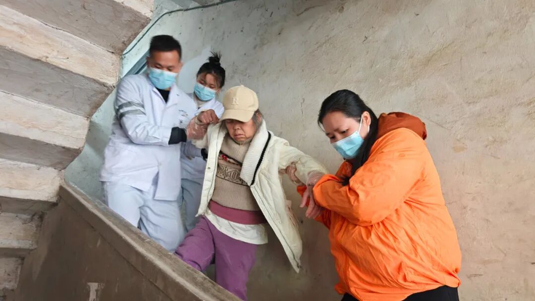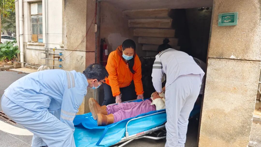 原来,由于近期持续低温,黎阿姨因衣着厚重,且年事已高、身体不便,加上常年照料女儿疲惫缠身,一时不慎在家中滑倒,几次挣扎后无法起身。网格员赶到黎阿姨家后,一边温言安慰老人,一边迅速联系120急救中心,并与黄女士保持电话沟通。在等待救护车期间,社区工作人员根据医护人员的电话指导,细心查看黎阿姨的身体状况,为后续的专业治疗提供重要参考。