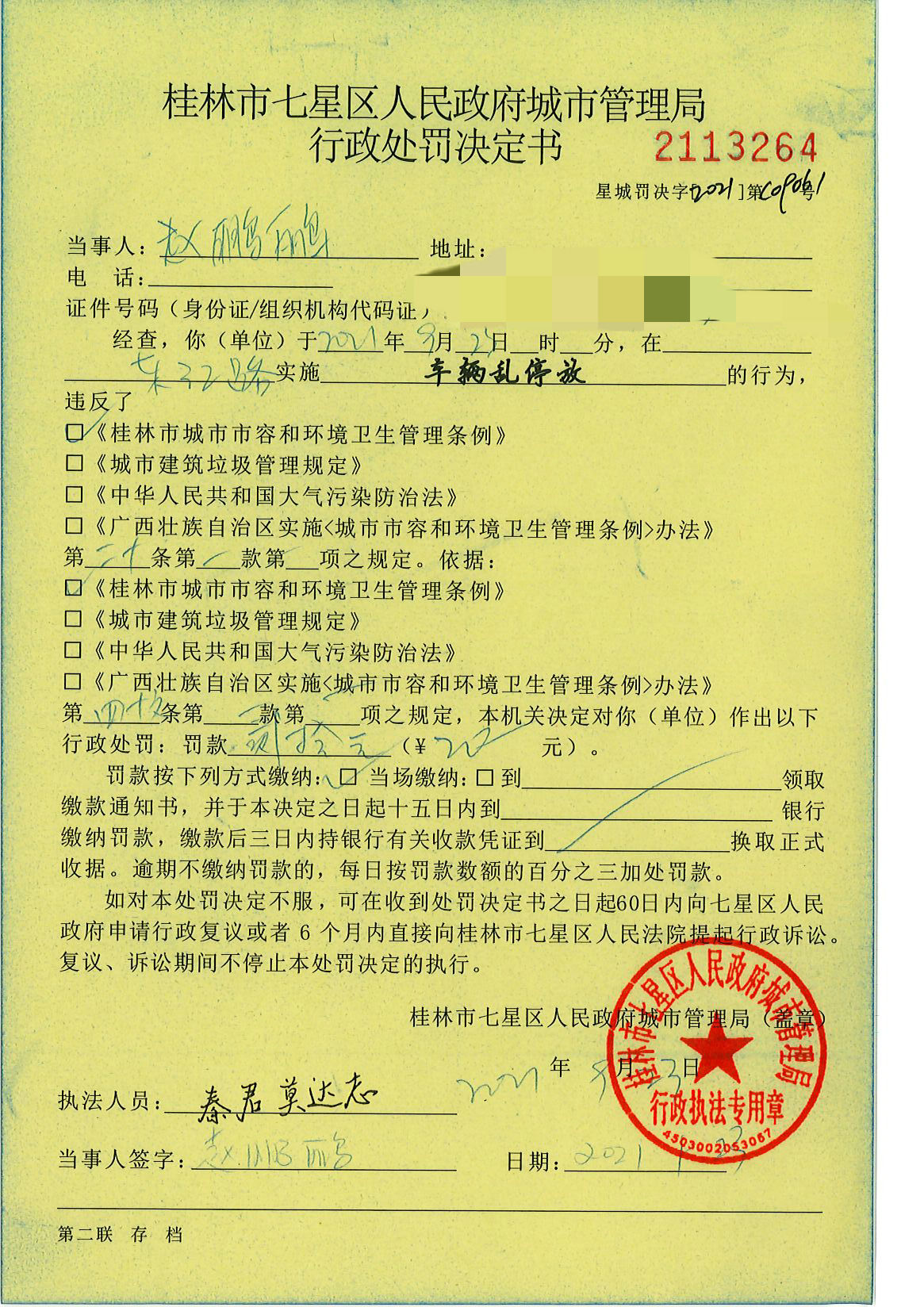 桂林市七星区城市管理局行政处罚决定书星城罚决字〔2021〕C09061号-赵鹏鹂