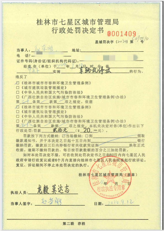 桂林市七星区城市管理局行政处罚决定书星城罚决字【2024】第C09010号