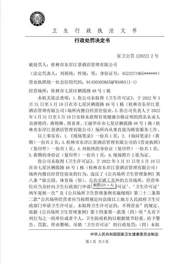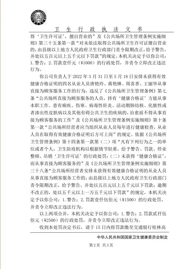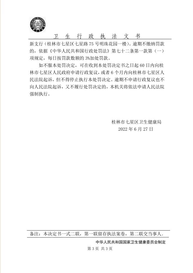 桂林市七星区卫生健康局行政处罚决定书(星卫公罚〔2022〕2号)
