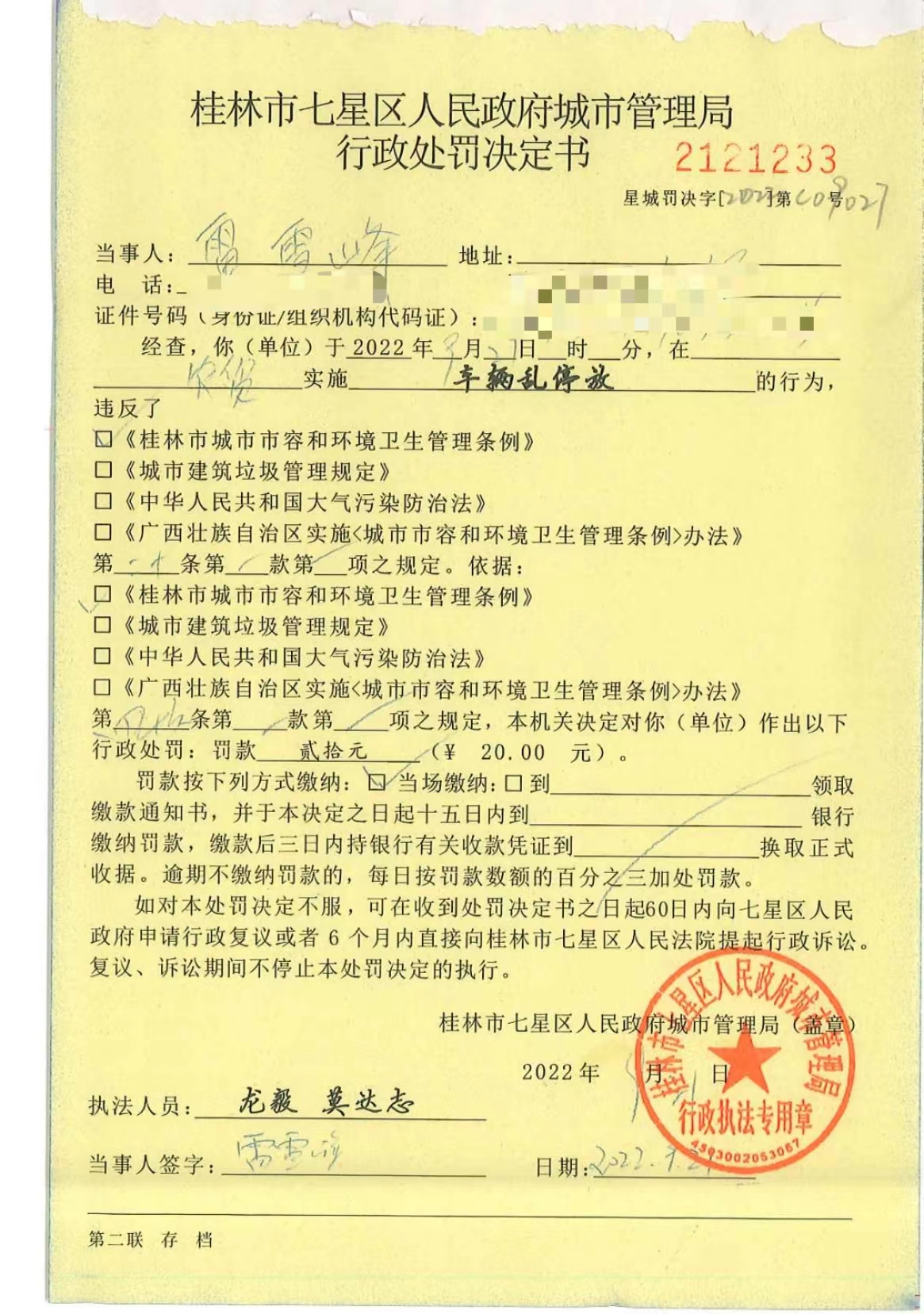 桂林市七星区城市管理局行政处罚决定书星城罚决字〔2022〕第C09027号-雷雪峰