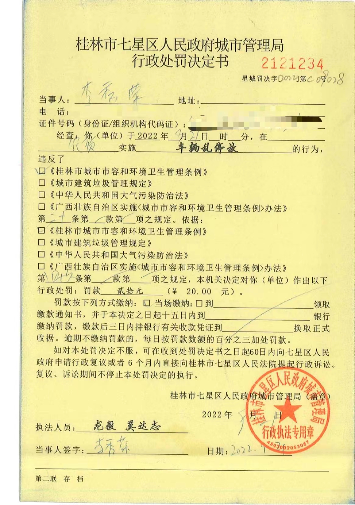 桂林市七星区城市管理局行政处罚决定书星城罚决字〔2022〕第C09028号-李秀荣