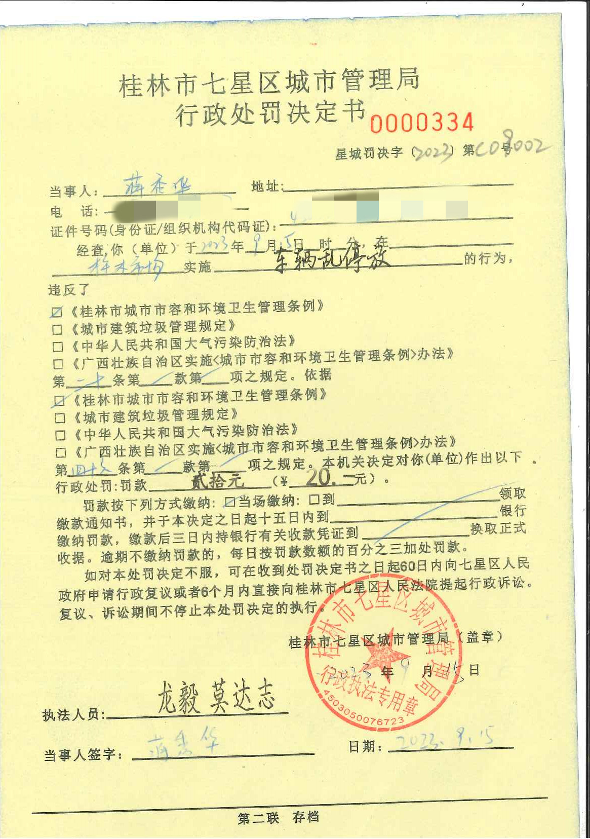 桂林市七星区城市管理局行政处罚决定书星城罚决字〔2023〕第C009002号-蒋秀华