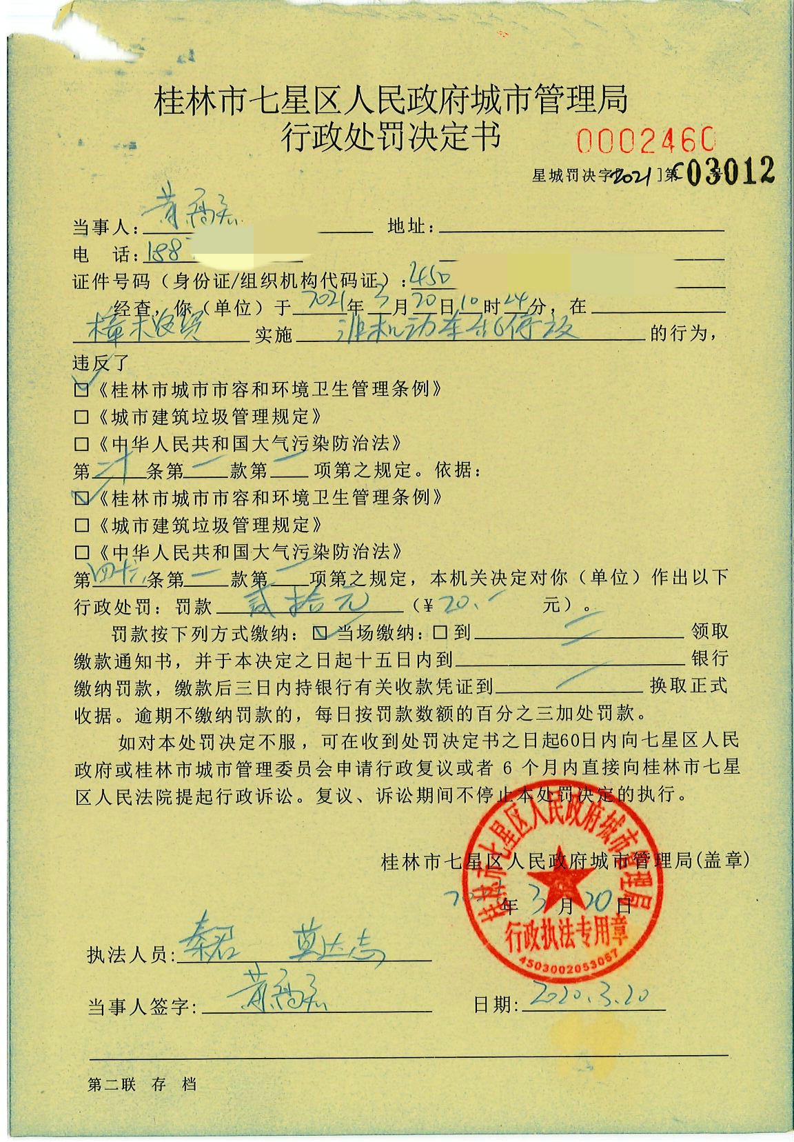 桂林市七星区城市管理局行政处罚决定书星城罚决字〔2021〕C03012号-黄高齐