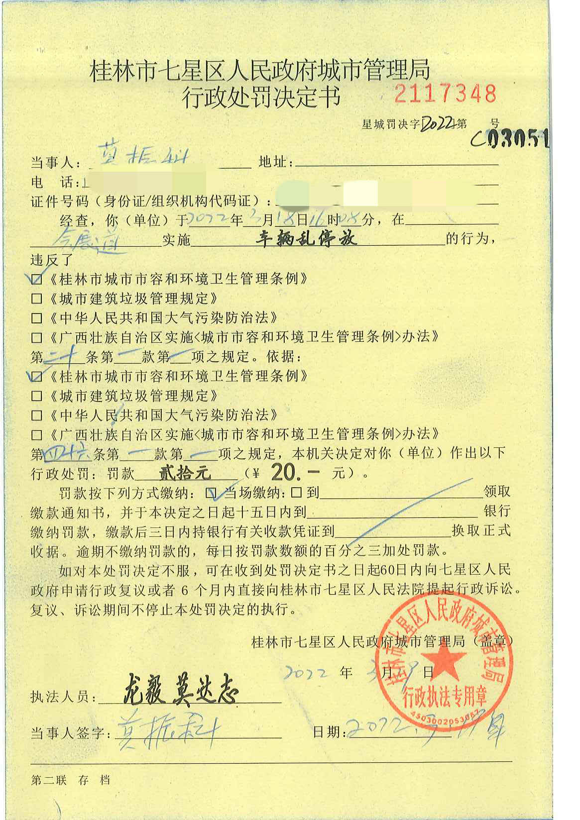 桂林市七星区城市管理局行政处罚决定书星城罚决字〔2022〕第C03051号-莫振科