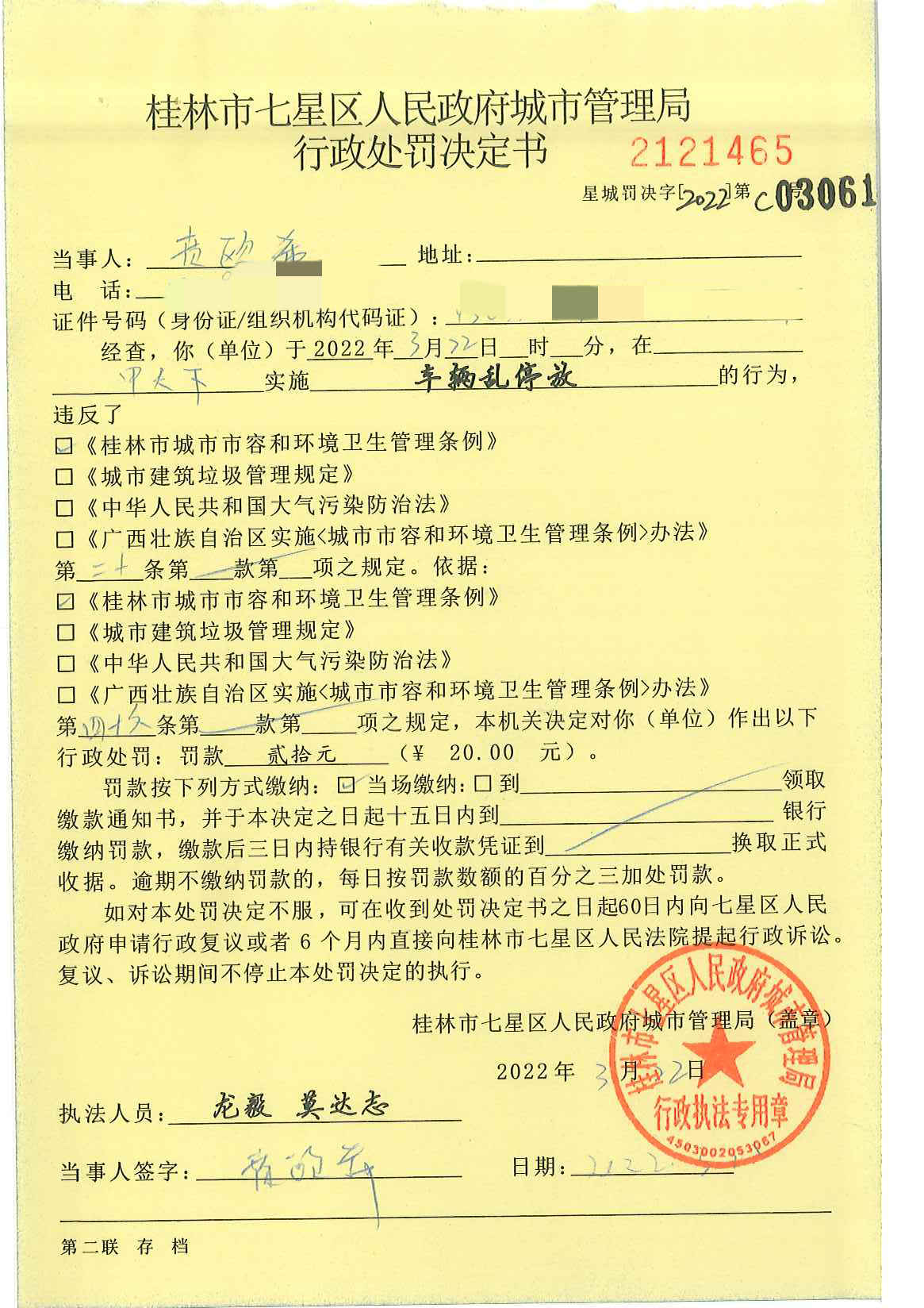桂林市七星区城市管理局行政处罚决定书星城罚决字〔2022〕第C03061号-贲欧希