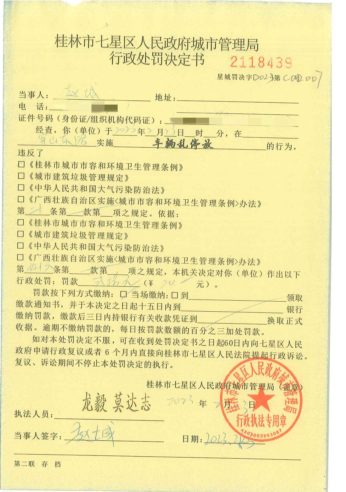 桂林市七星区城市管理局行政处罚决定书星城罚决字〔2023〕第C02007号-赵城