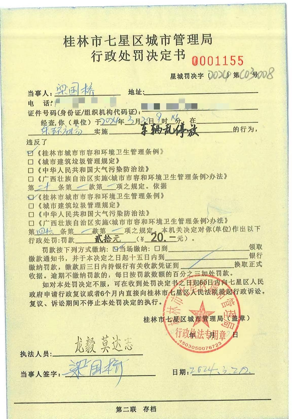 桂林市七星区城市管理局行政处罚决定书星城罚决字〔2024〕第C03008号梁国桥