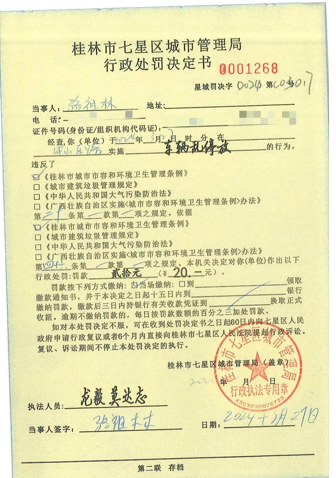 桂林市七星区城市管理局行政处罚决定书星城罚决字〔2024〕第C03017号骆祖林
