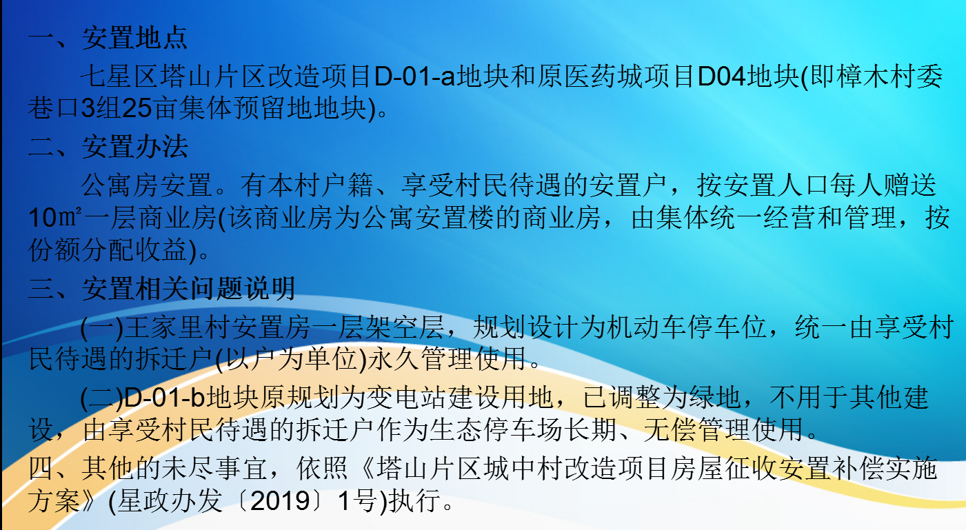 【图文解读】《桂林市七星区人民政府办公室关于印发《塔山片区城中村改造项目房屋征收安置补偿实施方案(王家里村)补充规定》的通知》的政策解读