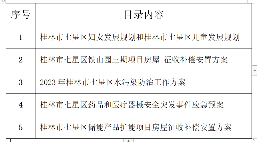 七星区重大行政决策公开目录
