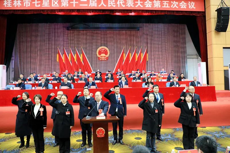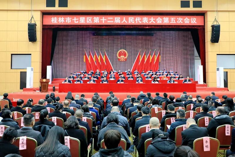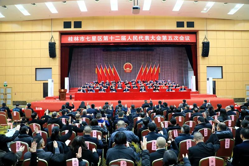 2月13日下午,桂林市七星区第十二届人民代表大会第五次会议圆满完成各项议程,在会展中心国际会议厅胜利闭幕。