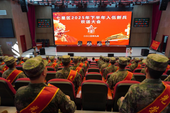 9月11日下午,七星区在桂林市民兵训练基地隆重举行2025年下半年新兵入伍欢送大会。区委书记裴军,区委常委、区人武部部长周亮,区委常委、区委办主任熊波浪,区人武部政委刘广出席大会。56名优秀青年身着戎装、胸佩红花,肩负着家乡人民的期望,即将奔赴军营,开启军旅生涯。