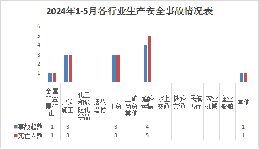 5月份接报生产安全事故起数1起、死亡1人、无受伤人数。