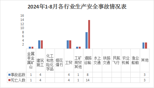 8月份接报生产安全事故起数1起、死亡1人、受伤人数。