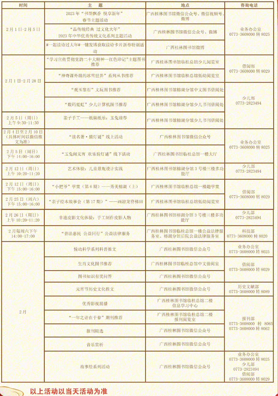 桂林图书馆二月活动