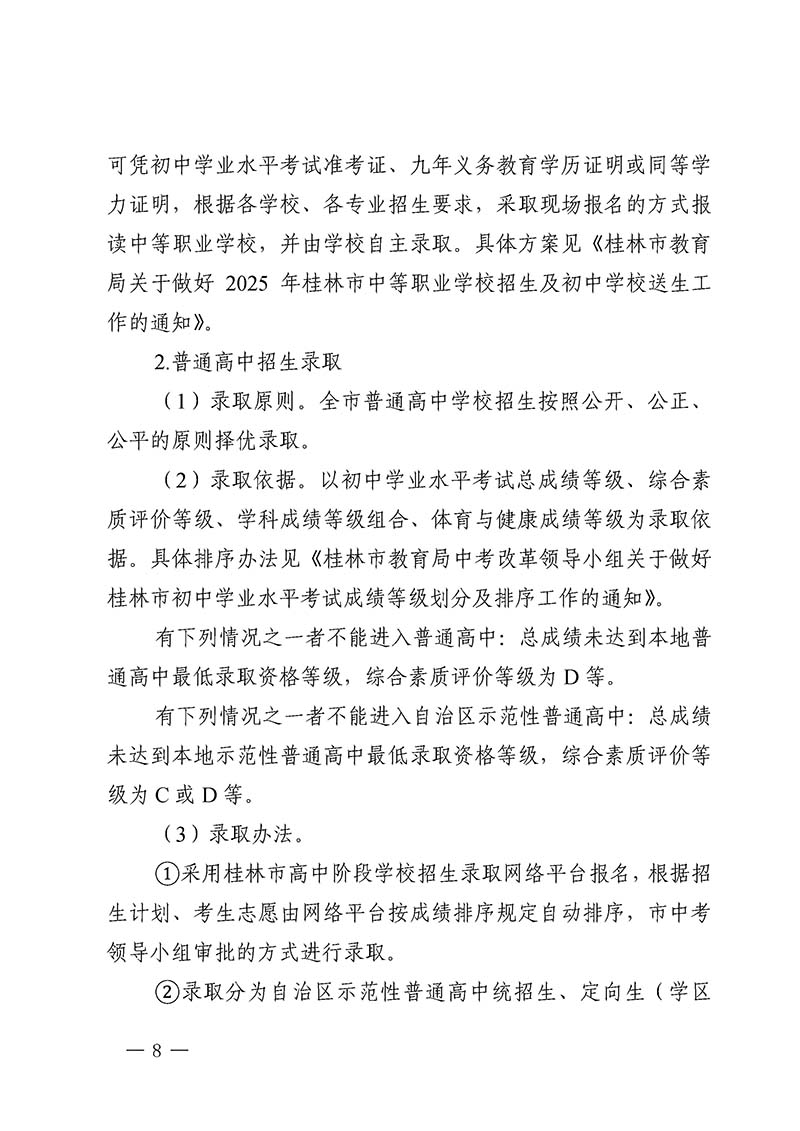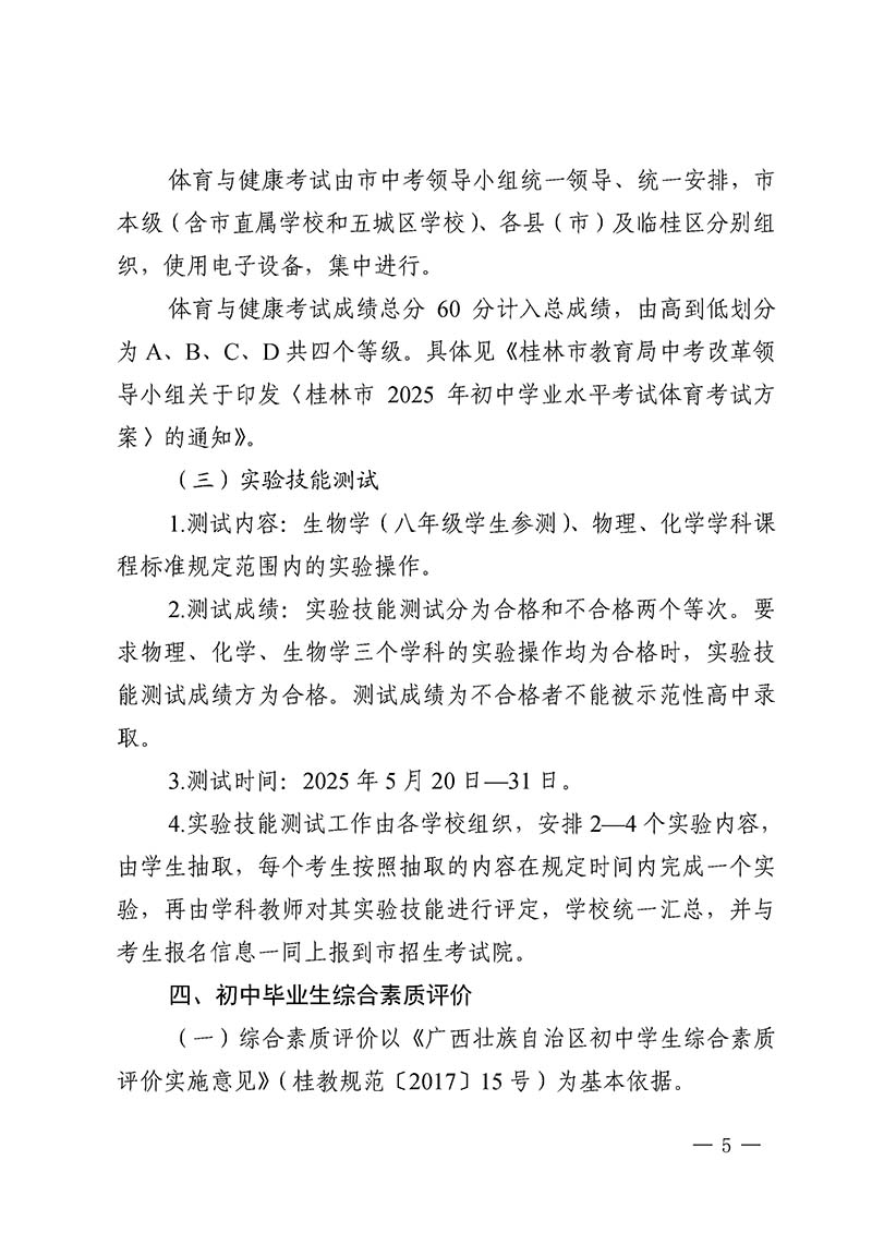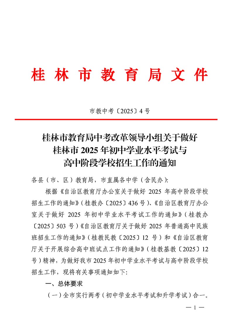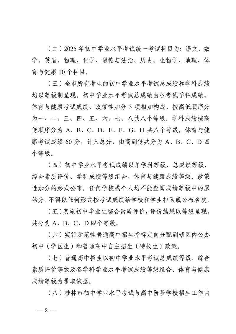 桂林市教育局中考改革领导小组关于做好桂林市2025年初中学业水平考试与高中阶段学校招生工作的通知