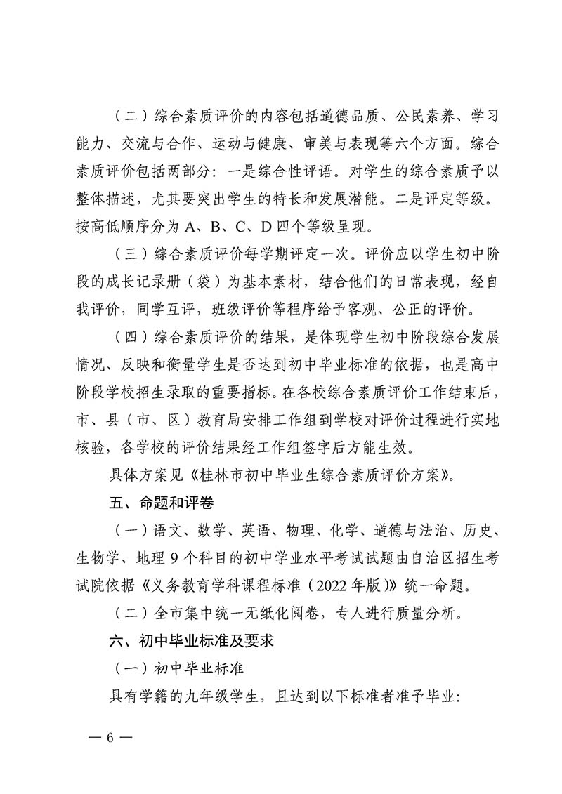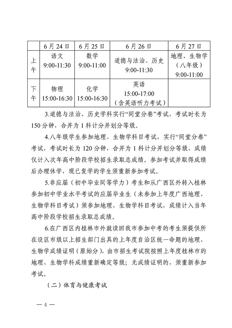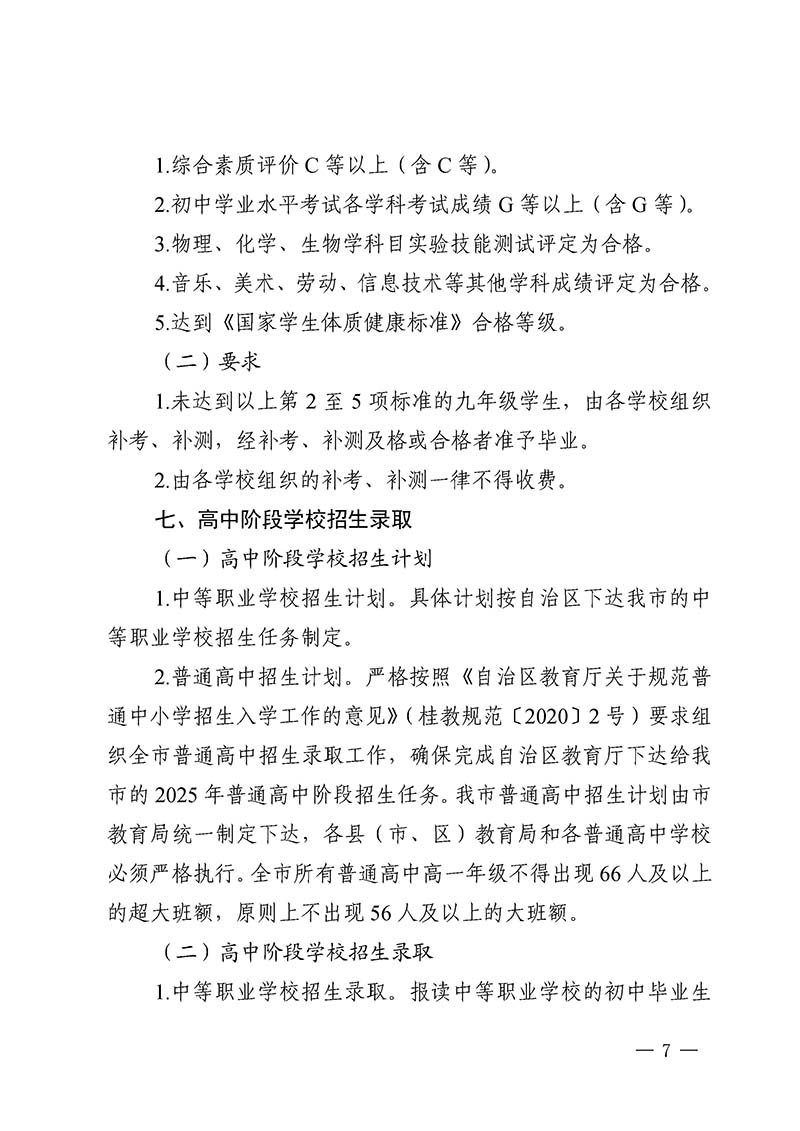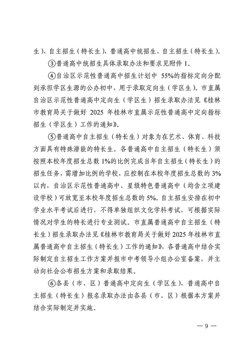 桂林市教育局中考改革领导小组关于做好桂林市2025年初中学业水平考试与高中阶段学校招生工作的通知