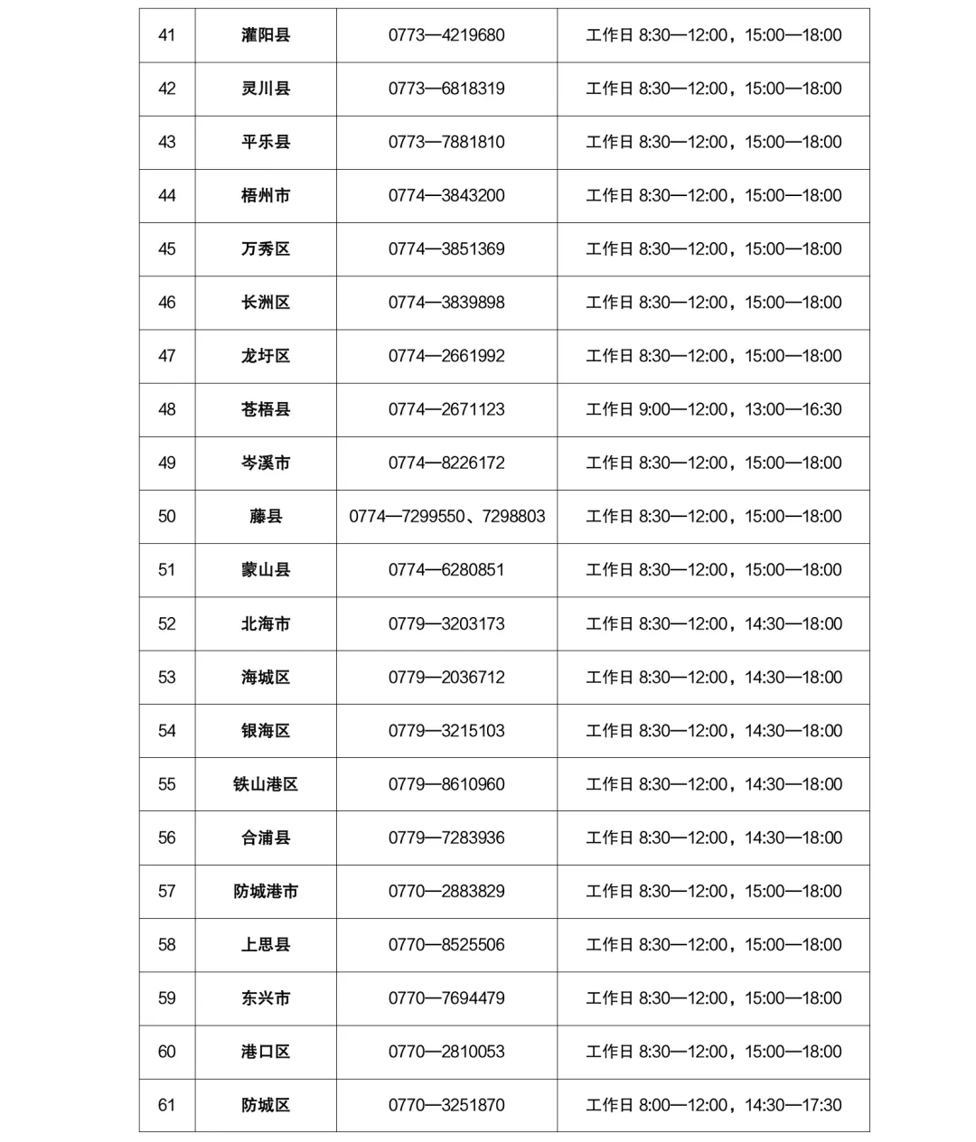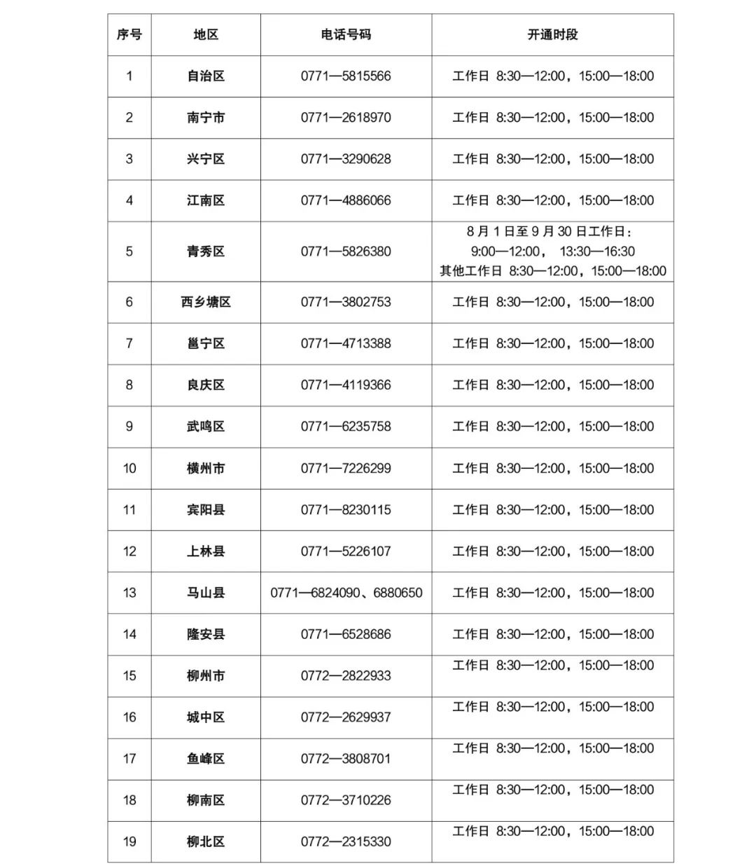 广西各级学生资助管理部门学生资助热线电话