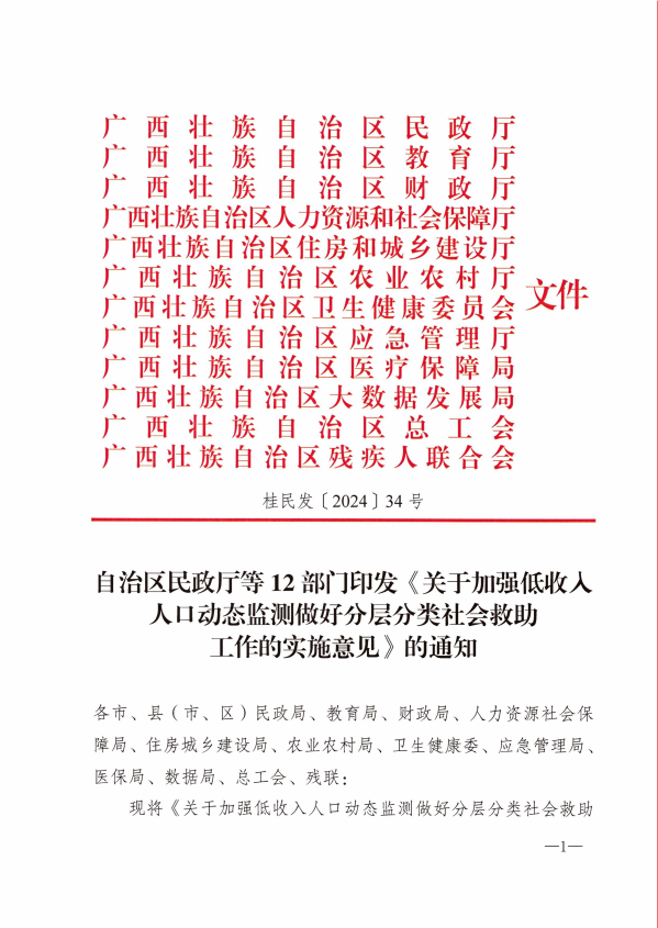 自治区民政厅等 12 部门印发《关于加强低收入人口动态监测做好分层分类社会救助工作的实施意见》的通知