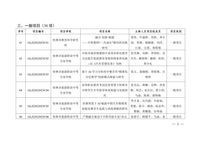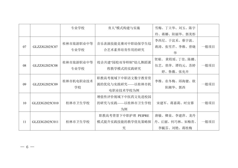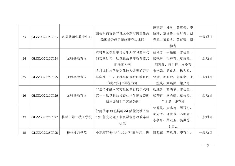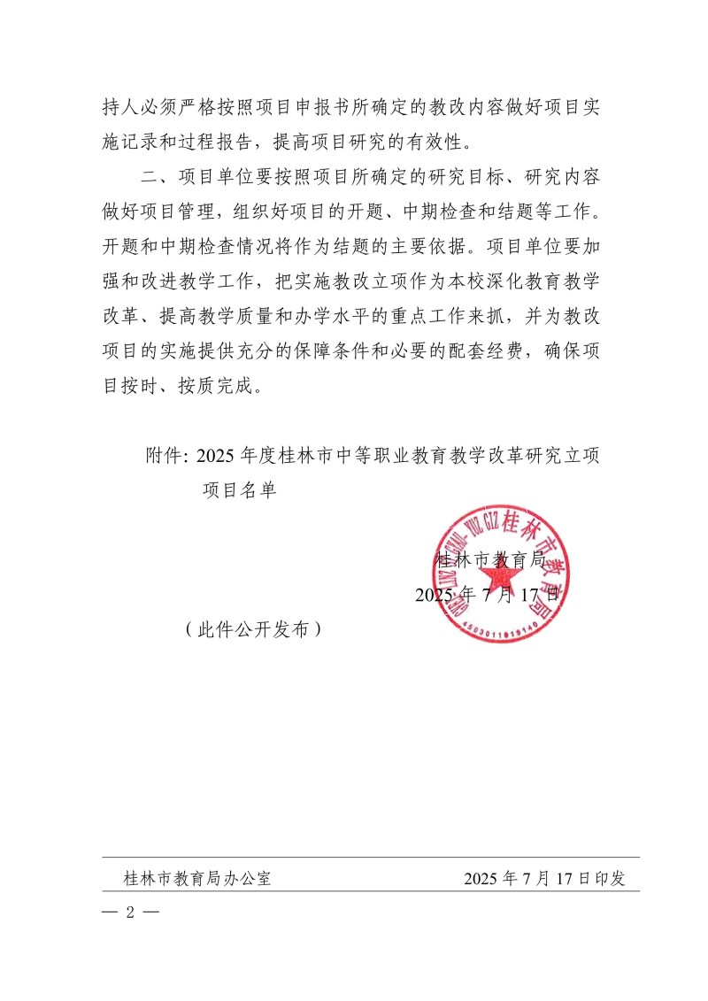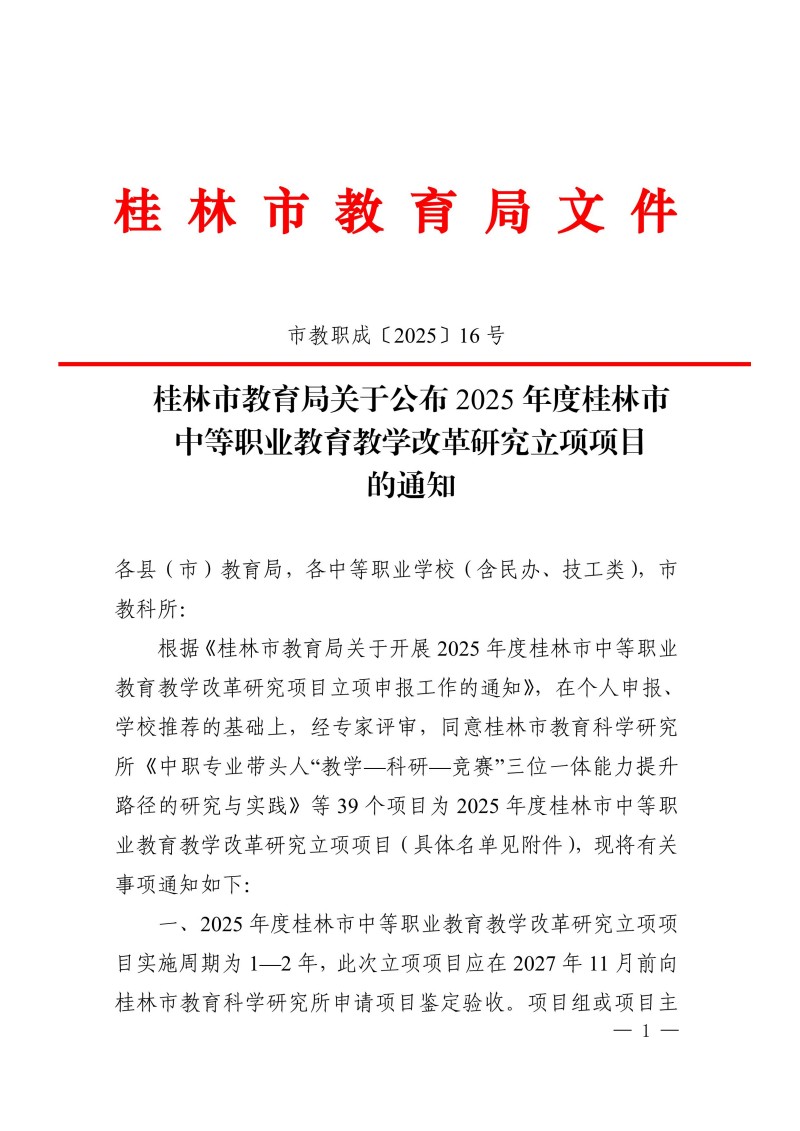 桂林市教育局关于公布2025年度桂林市中等职业教育教学改革研究立项项目的通知