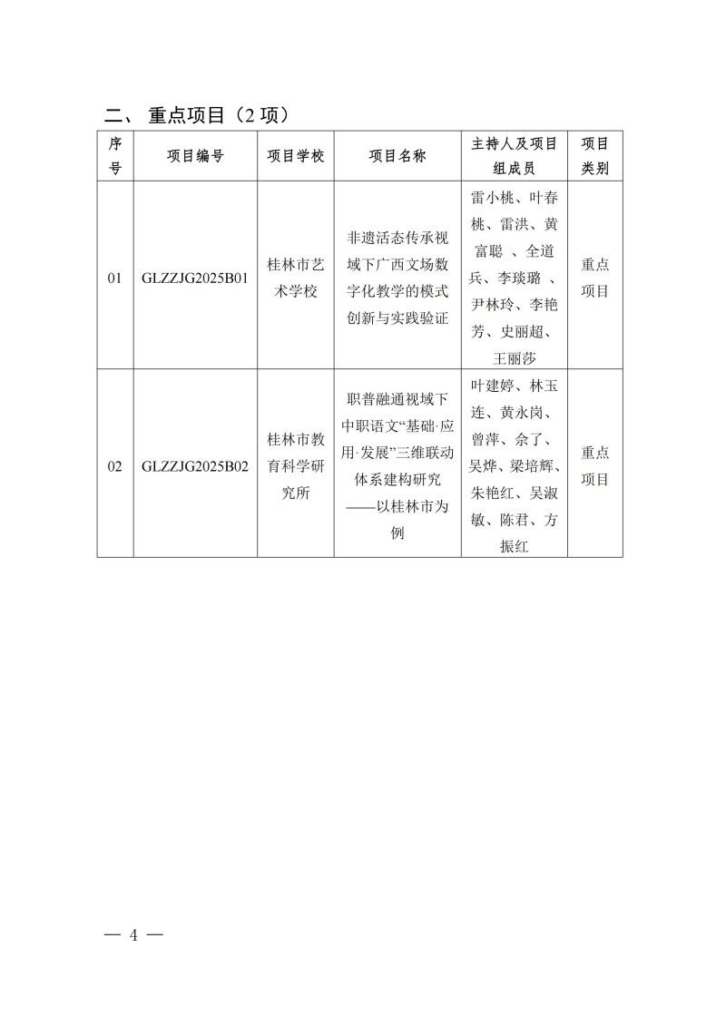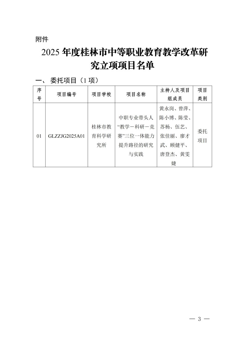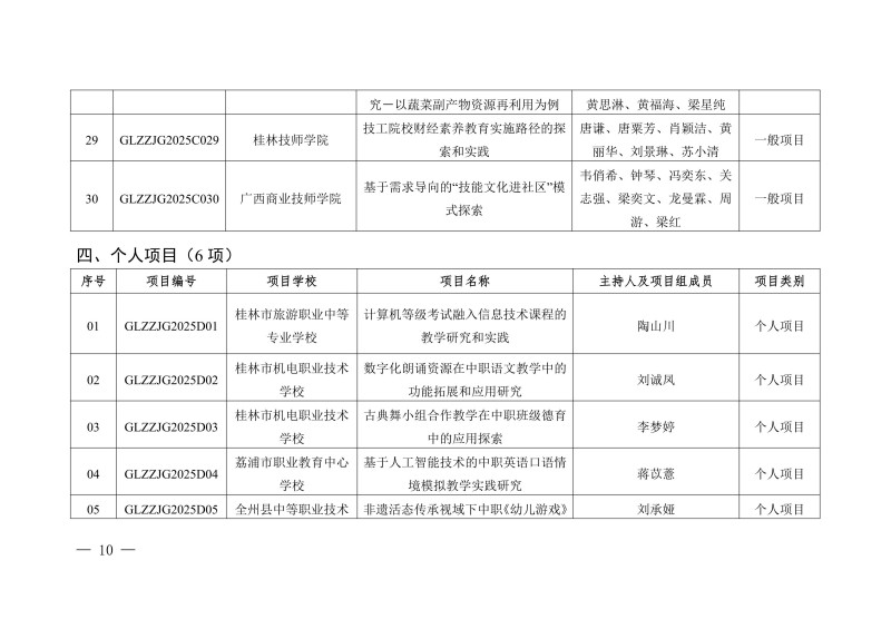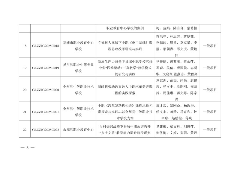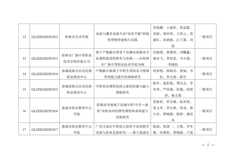 桂林市教育局关于公布2025年度桂林市中等职业教育教学改革研究立项项目的通知