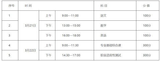 (1)考试科目分为公共基础课和职业适应性测试。