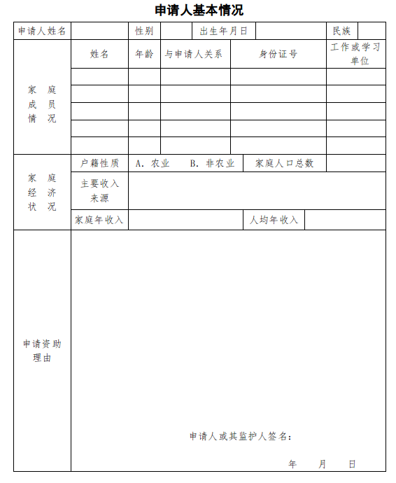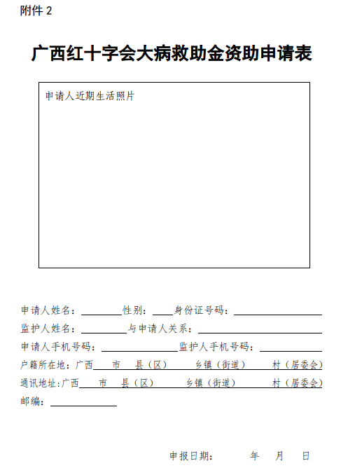 2.《广西红十字会大病救助金资助申请表》