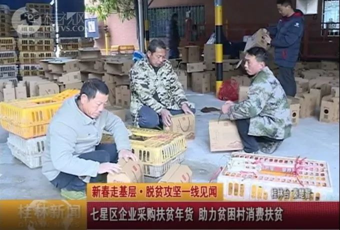 1月15日,在桂林南药股份有限公司,一批来自灌阳县文市镇同仁村的扶贫年货土鸡顺利送达企业员工手中。同仁村的农户们卸货、分装、打包,现场一片忙碌。桂林南药公司采购了价值10万元的1000只土鸡,以消费扶贫购年货促进七星区帮扶贫困村的贫困户增产增收。