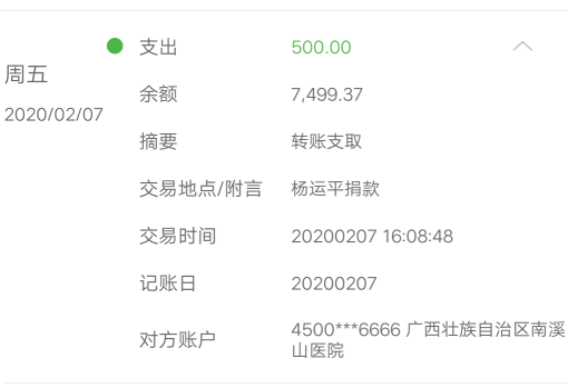 2月7日下午,桂大社区接到杨阿姨电话,说想委托桂大社区党委协助她把别人慰问她的500元捐赠给南溪山医院。随后,桂大社区党委书记江斌、三里店民警一同来到杨阿姨家,她很激动对江书记说:“疫情发生以来,桂大社区工作人员加班加点全力防控疫情,大家都在尽最大的努力作贡献,我作为社区居民,本应该积极加入到疫情志愿者中来的,但由于我的腿残疾,只能捐赠这500元代表我的绵薄心意,感谢党组织多年来对我的关心和帮助。”