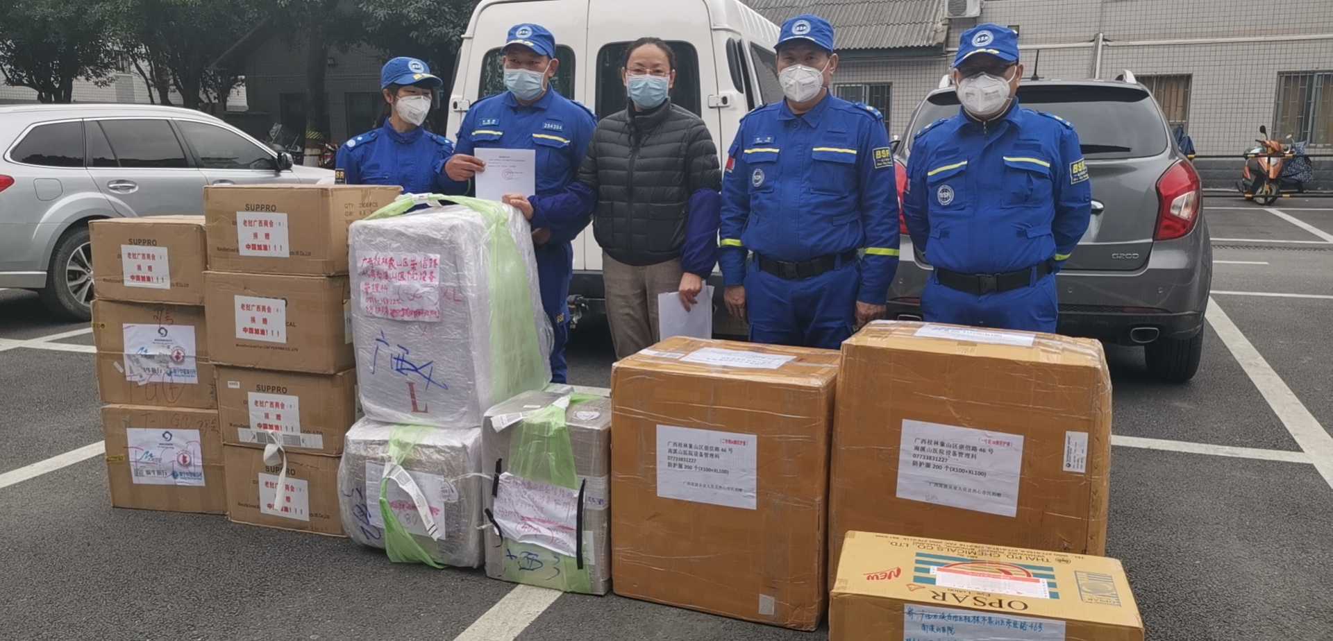 今日,七星街道办事处工会联系到了居住在桂林三里店兰乔圣菲小区该群群主“美美裙”,据了解她是一名境外游的桂林领队,前期她联系到了南溪山医院设备科的蒋医生,了解到最紧缺的治疗物资后开始联系仍在境外的其他领队帮购买。“买紧缺物资是最难的!真的特别难!”美美裙说,当时国内缺货严重,有货的基本上都是一扫而空,“我第一笔订单款已经转了,第二天又退回来。当时心里那个急啊!”她说,买物资过程非常繁琐的,等确定能要的时候,那边又没货了。“随后我们领队职工同事们开始从韩国、俄罗斯、泰国、日本、迪拜、越南、缅甸,新加坡等各地开始寻找医护人员能用得上的一切物资。”“美美裙”说,当时他们就改变策略,从国外购买……